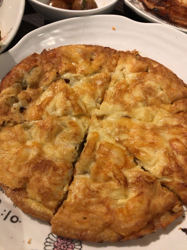 次は海鮮チジミ。フレッシュなタコがいい感じの料理である。