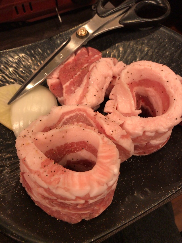玉ねぎも豚肉もハサミで店員さんがチョキチョキ切ってくれます。
